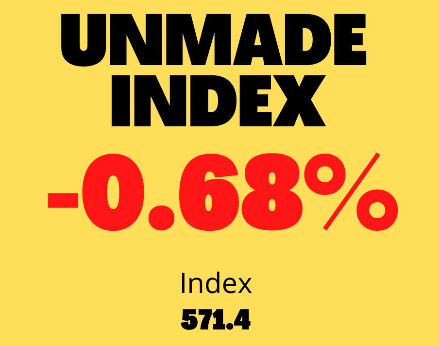 The Unmade Index closed on 571.4 points, down 0.68% for the day.